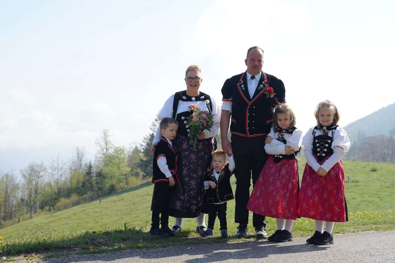 Familie Bögli: Konrad, gelernter Landwirt, Sandra, Käserin und Bäuerin FA, Madlaina 2014, Ursina 2015 & Ueli 2016, Christian 2020